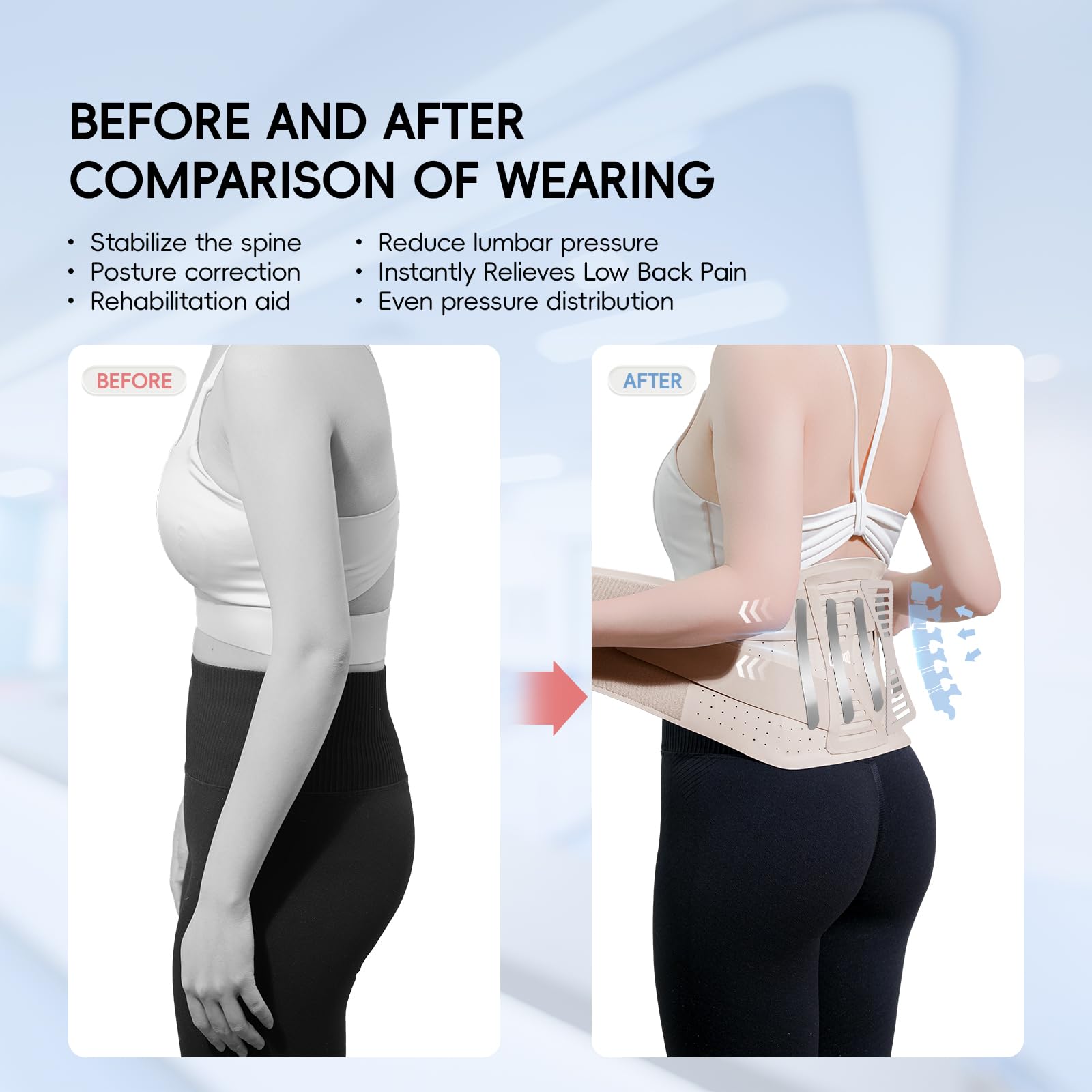 - In line with ergonomics: The lower back brace adopts a new generation of ergonomic support systems. The Curved Lumbar Panel replicates the spine's natural curvature to snugly fit your back, maximizing relief from discomfort, you can walk, sit, bend freely, or stretch without worrying about pain or discomfort, Let you enjoy the freedom of exercise again